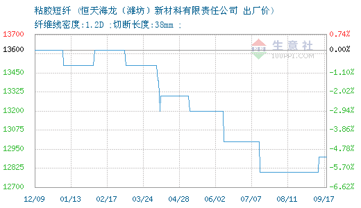 09月17日恒天海龙粘胶短纤为12900元