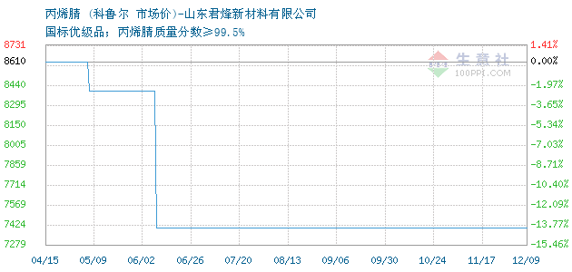 09月28日科鲁尔关于丙烯腈的报价为7400元/吨。丙烯腈的规格:国标优级品;丙烯腈质量分数≥99.5%。该报价有效期为3天。报价提供方:山东君烽新材料有限公司。