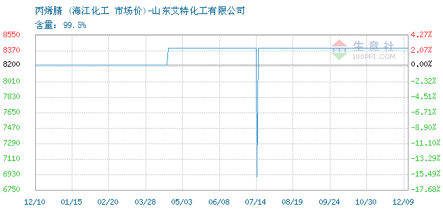 09月28日海江化工丙烯腈为8400元