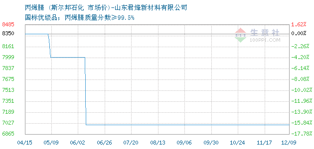 10月16日斯尔邦石化丙烯腈为7000元