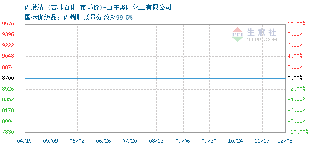10月24日吉林石化关于丙烯腈的报价为8700元/吨。丙烯腈的规格:国标优级品;丙烯腈质量分数≥99.5%。该报价有效期为3天。报价提供方:山东烨阳化工有限公司。