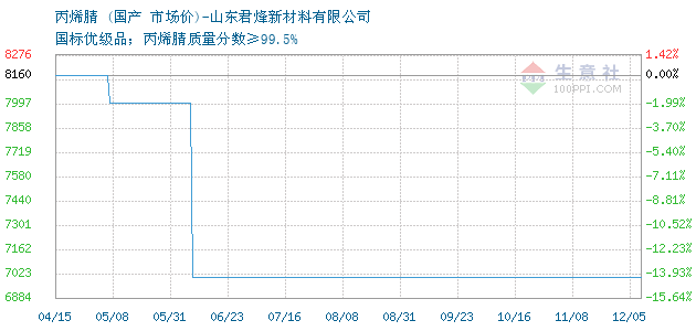 11月12日国产关于丙烯腈的报价为7000元/吨。丙烯腈的规格:国标优级品;丙烯腈质量分数≥99.5%。该报价有效期为3天。报价提供方:山东君烽新材料有限公司。