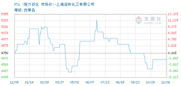 11月24日恒力石化关于PTA的报价为4650元/吨。PTA的规格:等级:优等品。该报价有效期为3天。报价提供方:上海溶和化工有限公司。