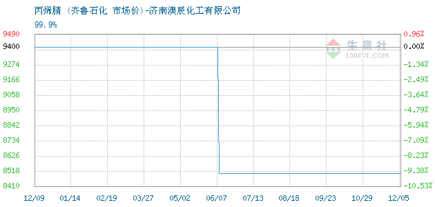 12月01日齐鲁石化关于丙烯腈的报价为8500元/吨。丙烯腈的规格:99.9%。该报价有效期为3天。报价提供方:济南澳辰化工有限公司。